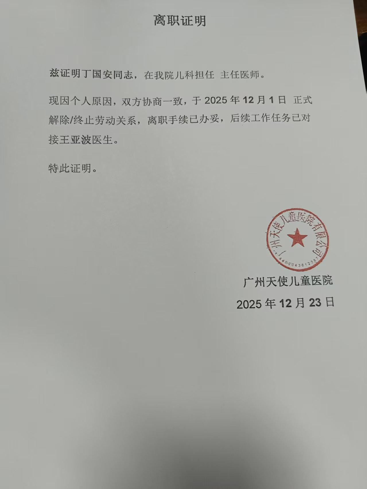 现因个人原因,双方协商一致,于2025年12月1日正式解除/终止劳动关系,离职手续已办妥,后续工作任务已对接王亚波医生。